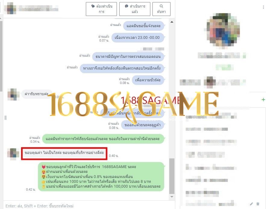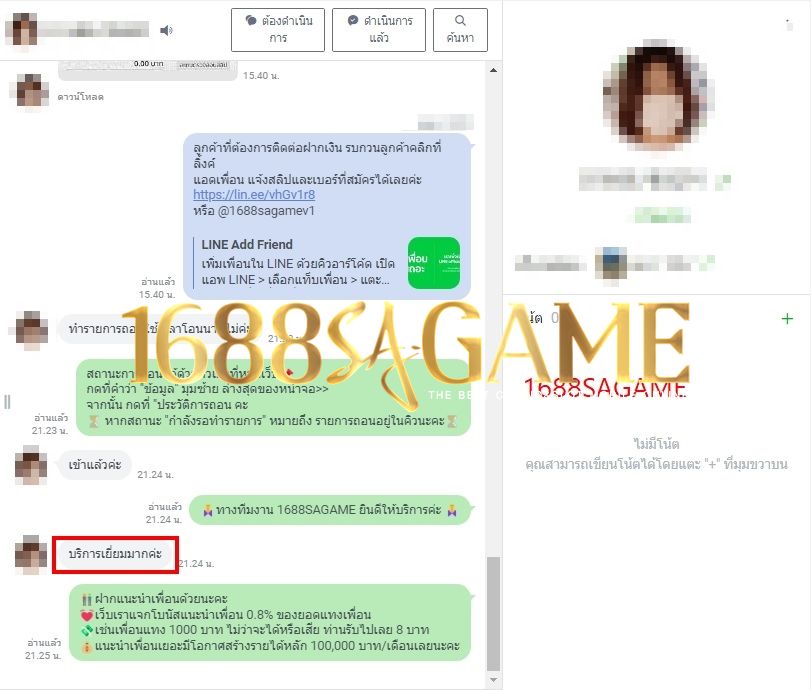 คำชมจากผู้ใช้บริการผ่าน call center มากกว่า 100 ชีวิต พร้อมให้บริการคุณตลอด 24 ชั่วโมง เราดูแลทุกคนเป็นอย่างดี ฝาก- ถอนไว จะถอนหลักล้านหลักสิบล้านเราก็จ่ายให้ เราให้ความสำคัญในการดูแลผู้ใช้บริการเป็นอันดับ 1 เชื่อมั่นเดิมพันไปกับเรา เล่นง่าย ปลอดภัย ใส่ใจในทุกบริการ