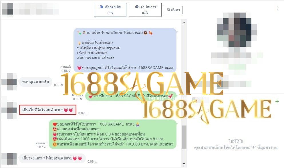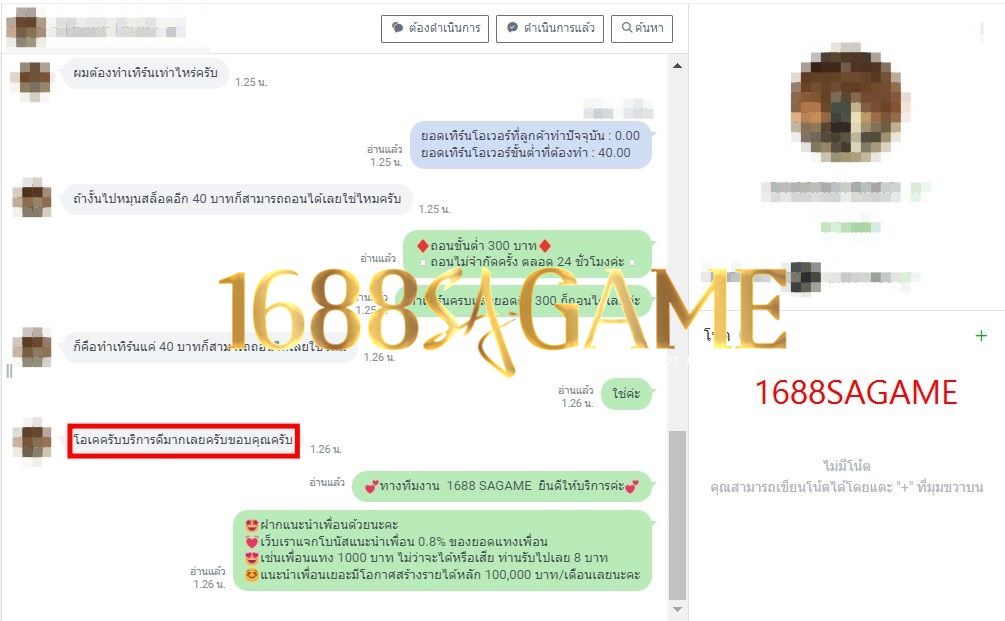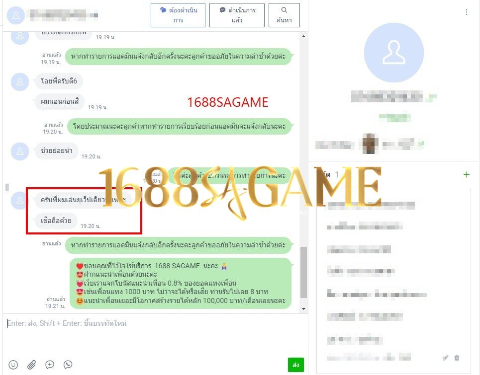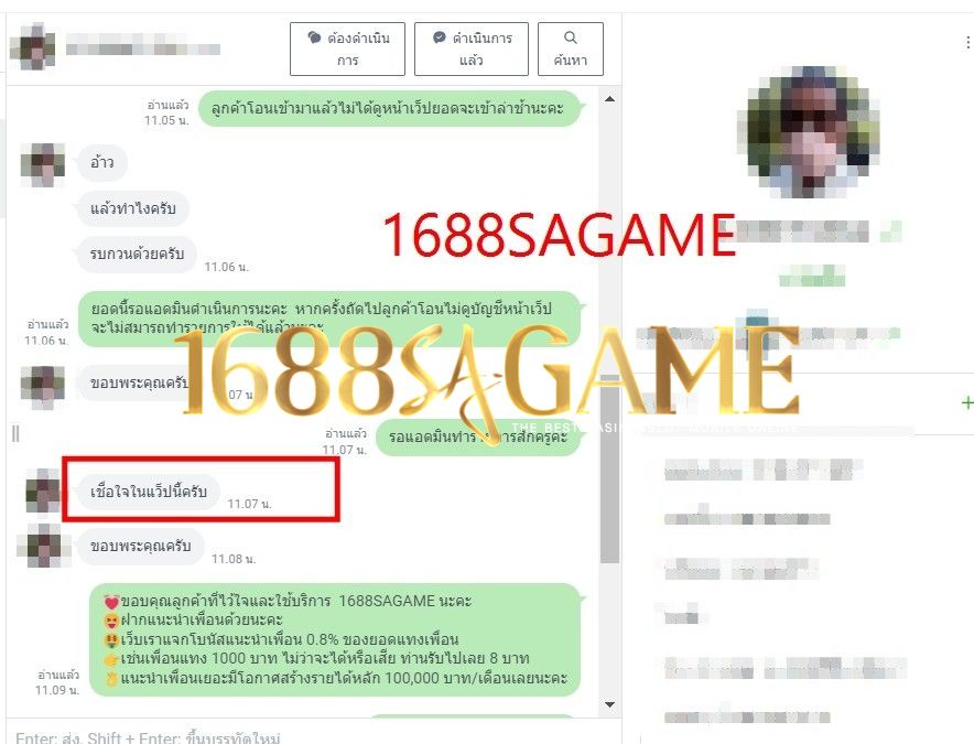 คำชมจากผู้ใช้บริการผ่าน call center มากกว่า 100 ชีวิต พร้อมให้บริการคุณตลอด 24 ชั่วโมง เราดูแลทุกคนเป็นอย่างดี ฝาก- ถอนไว จะถอนหลักล้านหลักสิบล้านเราก็จ่ายให้ เราให้ความสำคัญในการดูแลผู้ใช้บริการเป็นอันดับ 1 เชื่อมั่นเดิมพันไปกับเรา เล่นง่าย ปลอดภัย ใส่ใจในทุกบริการ